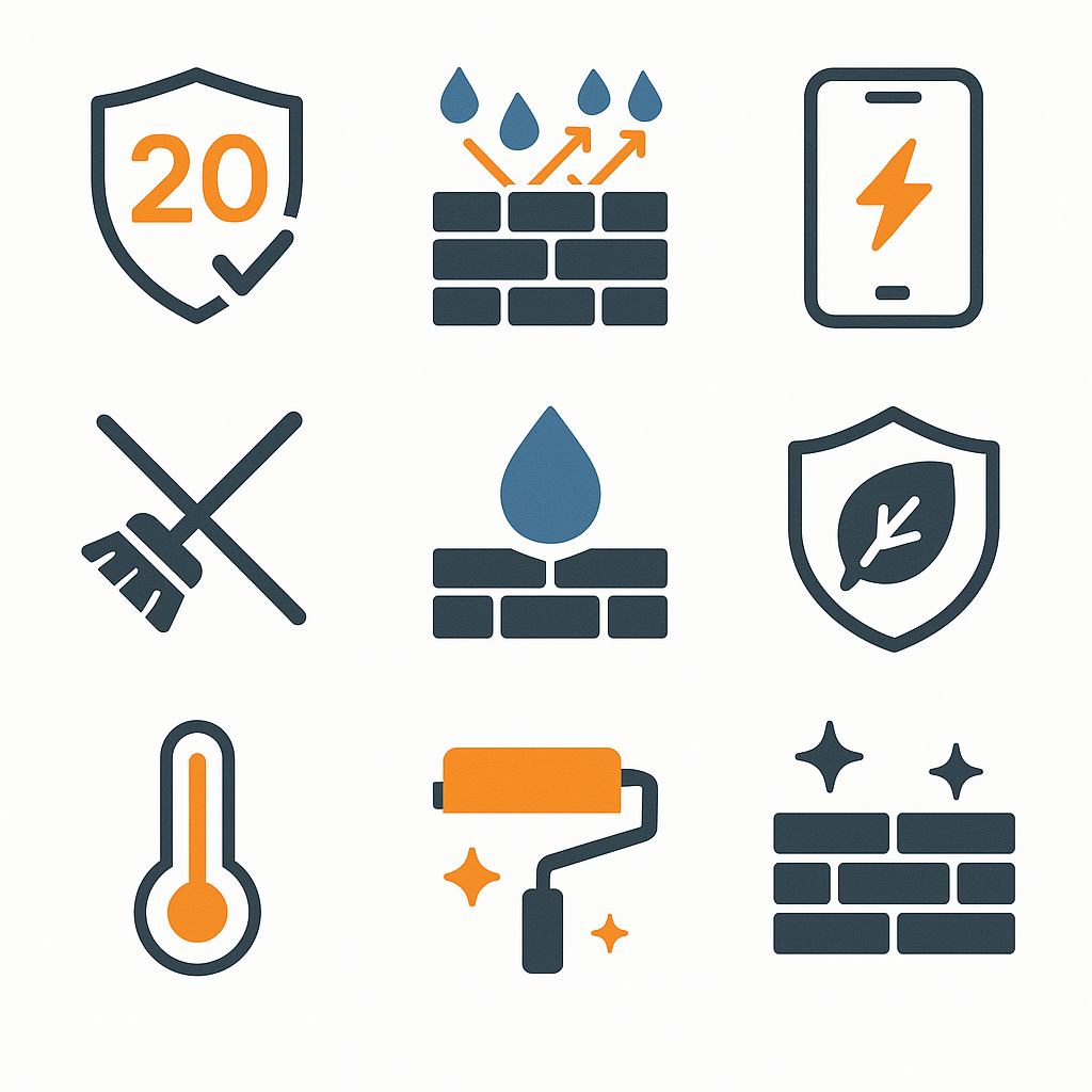 Discover the benefits of a protective wall coating, offering a maintenance-free exterior, improved kerb appeal, and long-lasting protection backed by a 20-year guarantee.